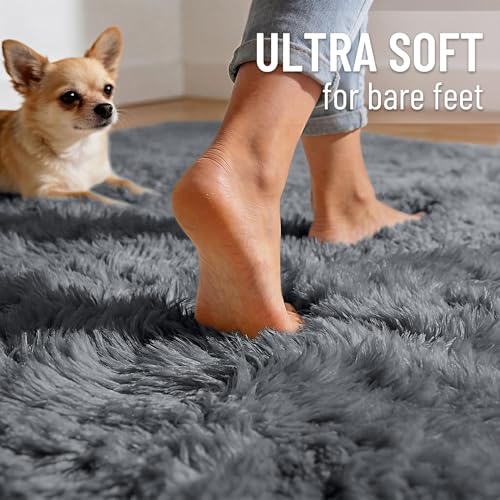 Area Rugs for Living Room Bedroom, Machine Washable 4×5.9 ft Soft Fluffy Shaggy Bedside Rug, Indoor Floor Carpet for Kids Girls and Boys, Dorms, Nursery Rooms, Home Decor Aesthetic, Grey