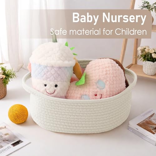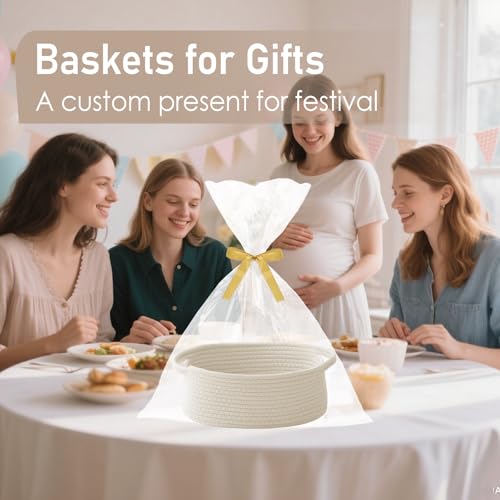 Woven Basket,Small Rope Storage Bin with Handles & Ribbon Bag, Organizer for Shelves Closets,Gift Basket Empty for Birthday,Books,Dog Toys,White